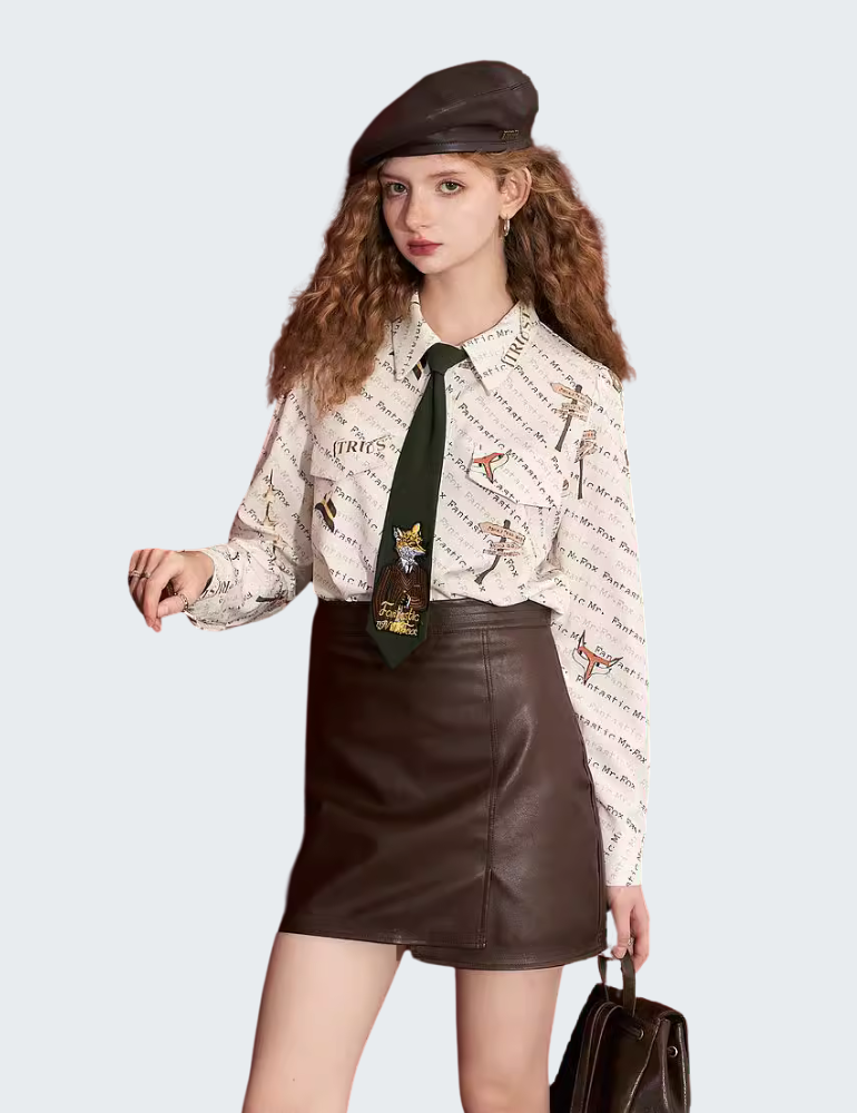 - 趣味印花衬衫:动物与英文元素融合,童趣十足,提升穿搭趣味性