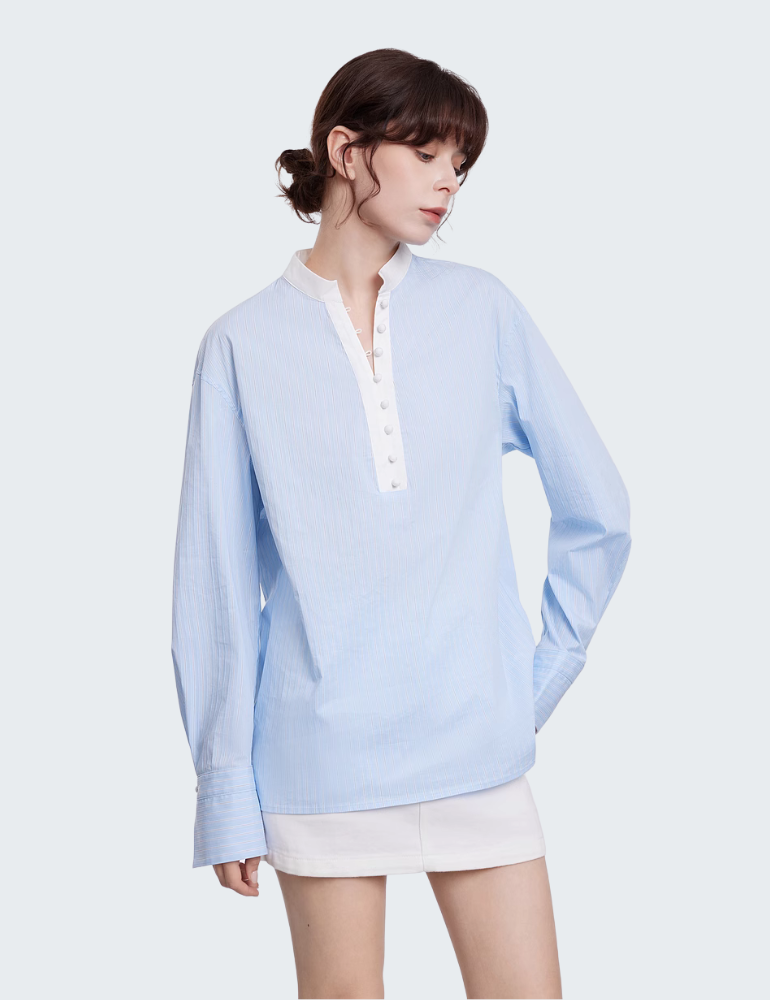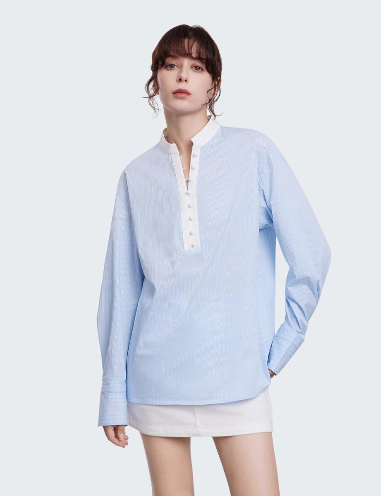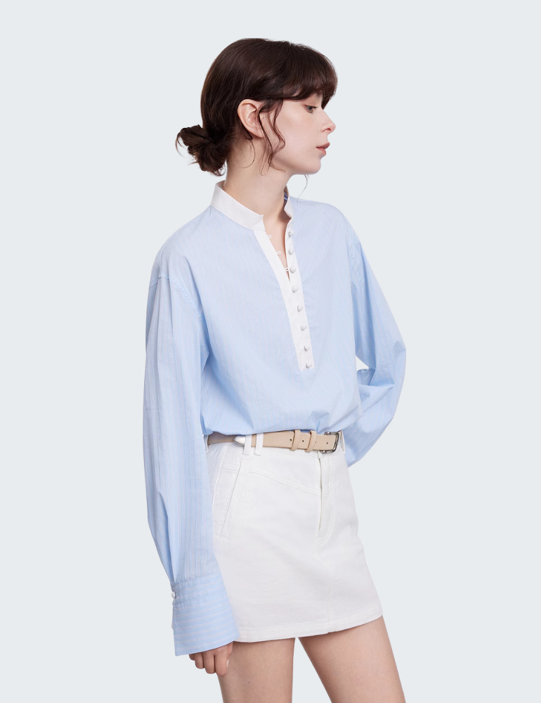 - 清新蓝白细条纹,视觉清爽利落,减龄不挑肤色