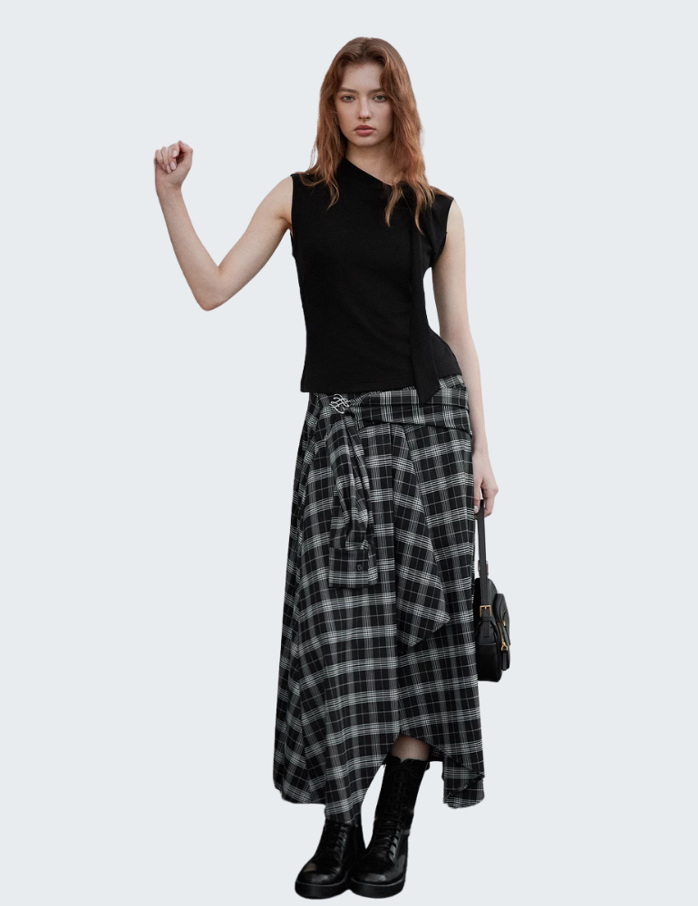 - 高腰A字长裙:前短后长不规则剪裁,层次感丰富,个性十足