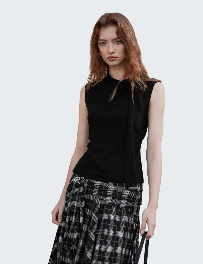 - 基础黑色上衣:无袖设计修饰手臂线条,凸显女性独立干练气质