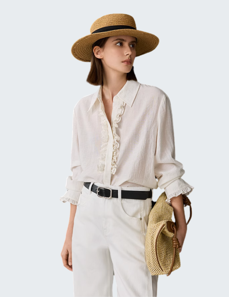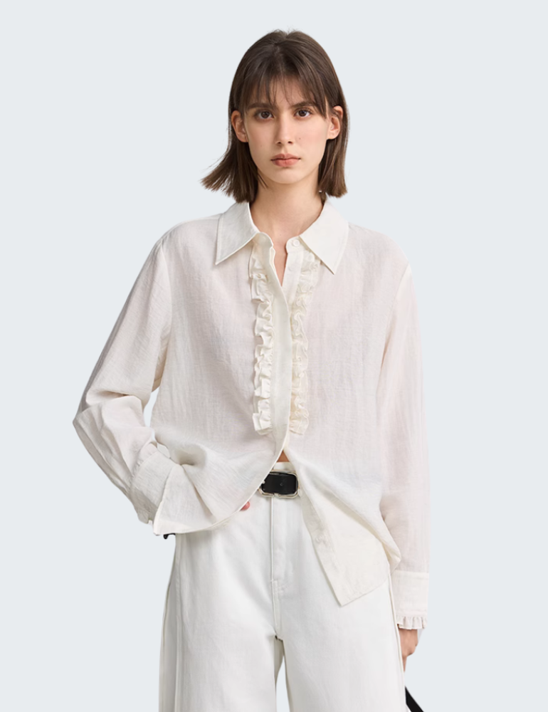 - 衬衫领口裁剪:知性翻领,修饰颈部线条,兼顾职场与休闲穿搭。